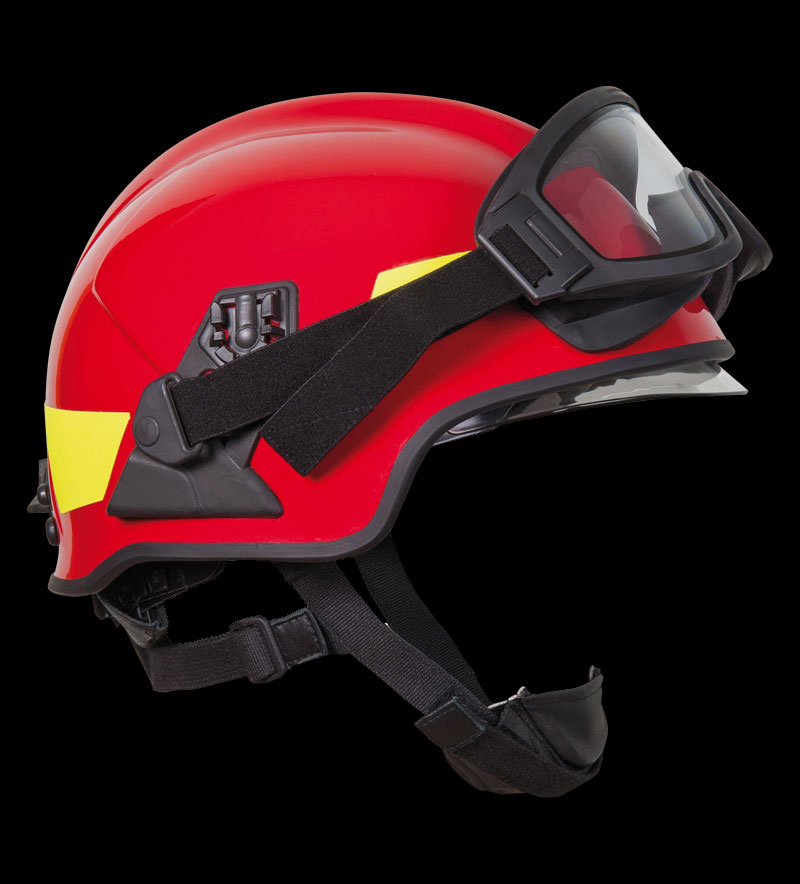 DESCRIPTION For structural and wild land firefighting. Lightweight long fibre composite shell, with optional visor and goggle. External knob for size adjustment system (patented). No interference with neck protector. Easy to use even when wearing firefighting gloves.